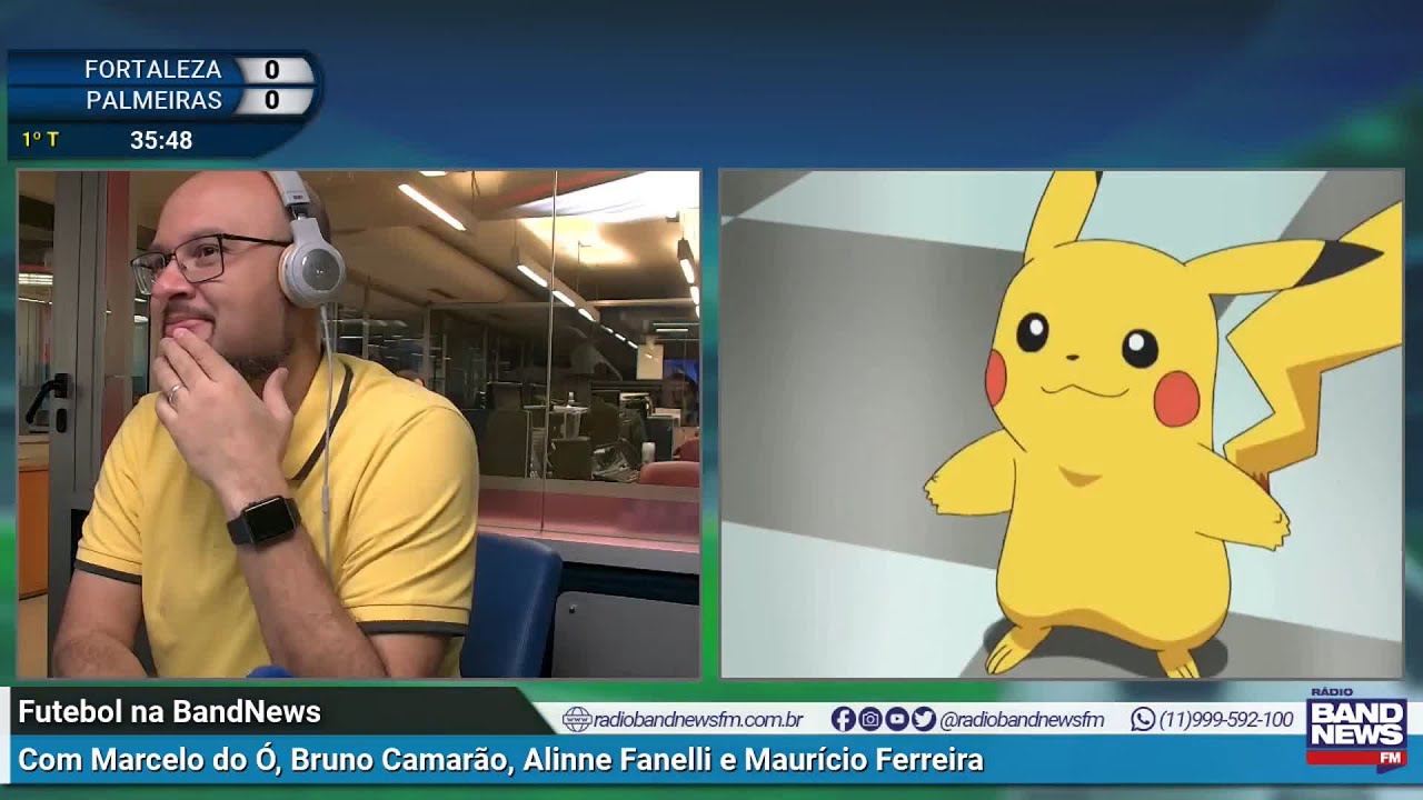 Durante transmissão do jogo entre Fortaleza e Palmeiras, o comentarista Bruno Camarão brinca com Marcelo do Ó e compara o narrador com o personagem Pikachu.