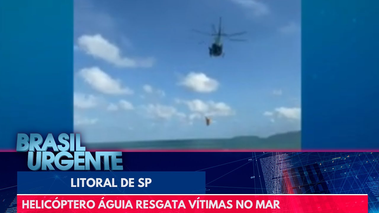 Helicóptero Águia da PM resgata vítimas que estavam se afagando no mar, no litoral de São Paulo. 📱 Redes sociais: 🐦Twitter: /brasilurgente 🔵 Facebook: /brasilurgente